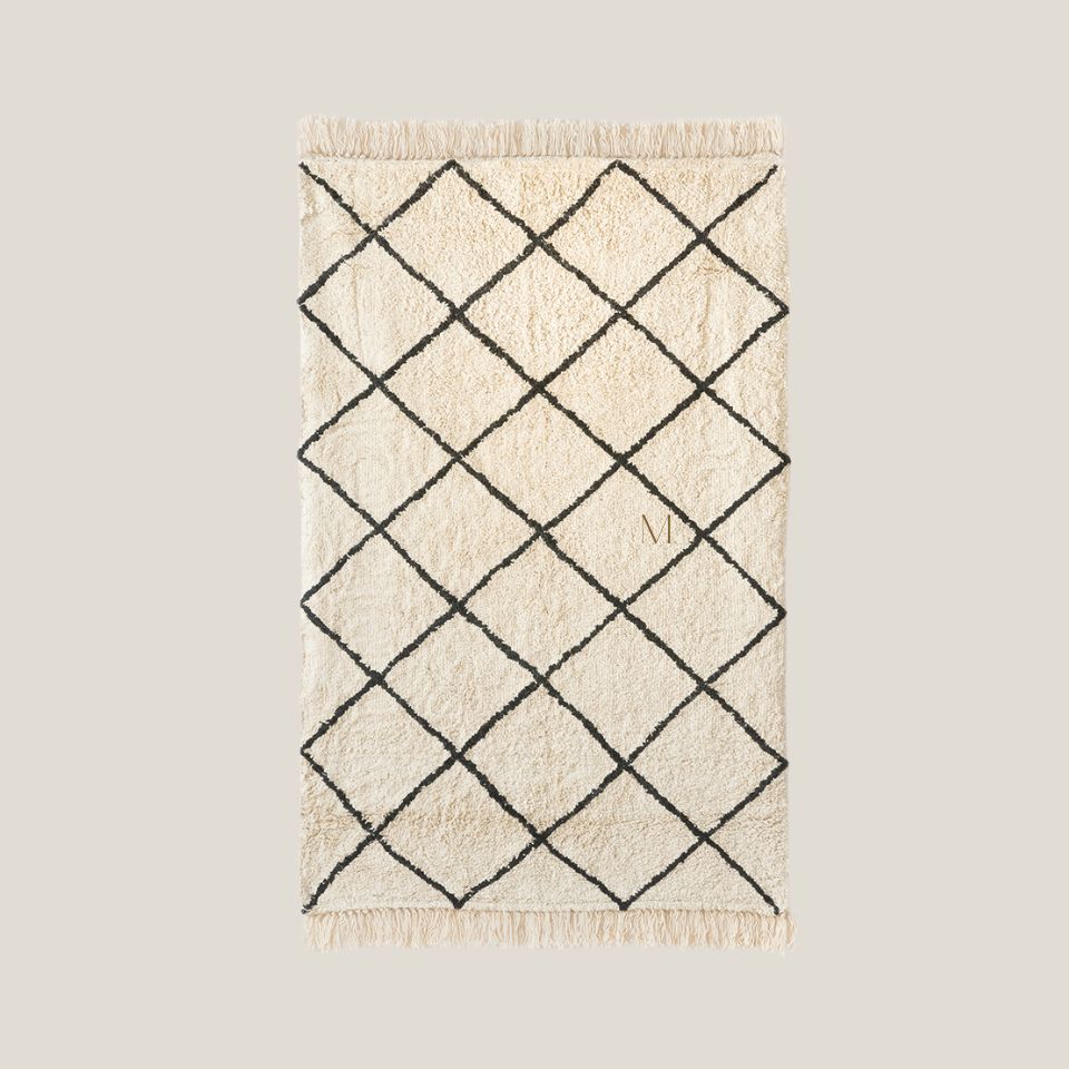 Sweet Morocco es una alfombra tejida en algodón, de pelo corto en blanco roto con diseño geométrico en negro. Encajará a la perfección en cualquier espacio. Alquila esta alfombra en Mafesa Integral.